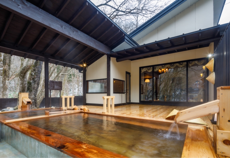 絶景の宿としても有名な標高2,000mの場所にある『ランプの宿 高峰温泉』。標高1,000mを超えると心拍数が上がって加圧トレーニングをしている感じになるので、ここに行くだけでもまず血行が促進されます。さらにこの宿の温泉は硫黄泉で、硫黄に含まれる「硫化水素ガス」が毛細血管を拡張する作用を持っているため血行促進の効果が。またこの温泉の最大の特徴は、30℃台の源泉そのままのぬる湯と、加温した硫黄泉の2つの湯船が隣り合わせになっていること。熱い温泉に入って、次はぬるい源泉に入る『温冷交互浴』をすることでより血行が促進され、同時に脂肪を燃焼する褐色脂肪細胞を刺激する効果も期待できます。飲泉もできるので、胃腸を整えることもできますよ。標高の高い場所に行って、硫黄で血行を促して、さらに温冷交互浴で代謝を上げて。ダイエットという面でいえば、今回ご紹介した10の宿の中でここが一番おすすめです。また宿のアクティビティも豊富で、本格的な星空鑑賞や、グリーンシーズンはハイキング、冬はスノーシューで自然散策をするツアーなどに、基本的に無料で参加できるんです。心も体もデトックスして、きれいになれる宿だと思います。