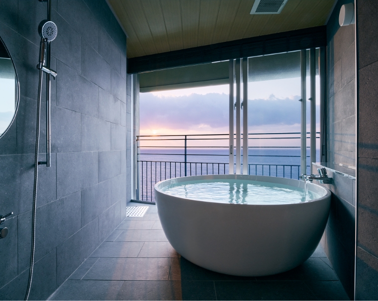 屋久島の半島の端に位置する『samana hotel Yakushima』。半分は海、もう半分は切り立った岩山を見晴らせる、屋久島らしいロケーションの宿です。温泉はトロトロの美容液のような、少しとろみのある感触が特徴。泉質はアルカリ性単純温泉で、石鹸のように肌の汚れや古い角質を落として、ツルツルすべすべの肌にしてくれます。私が最高に好きなのは、源泉かけ流し展望風呂を備えた『温泉スイート』というお部屋。浴室の蛇口をひねれば温泉が出てきます。温泉スイートからは海が一望できるようになっているので、まるで海の上に浮いているような感覚を味わえるんです。丸い湯船の中、トロトロの温泉に浸かっているだけで美しくなれる感じがする、ちょっとロマンチックな温泉です。また、このホテルの食事はビュッフェ形式なのですが、すごくおいしくて上質な大人ビュッフェなんですよ。お料理の監修は、屋久島のラグジュアリーホテル『sankara hotel&spa 屋久島』などサンカラグループのエグゼクティブシェフを務める武井智春さん。ライブキッチンがあって、ステーキや生パスタ、ピッツアなどは注文してから作ってくれますし、屋久島鮮魚の刺身や握り寿司、地元食材の天ぷら、それから手作りスイーツもすべておいしいです。島の食材や自然に力をもらって、温泉に入ってのんびり。リゾート時間を楽しむ屋久島が私は好きです。
