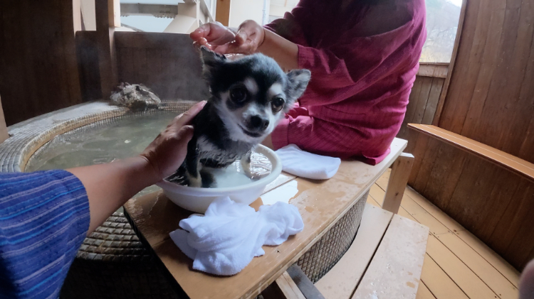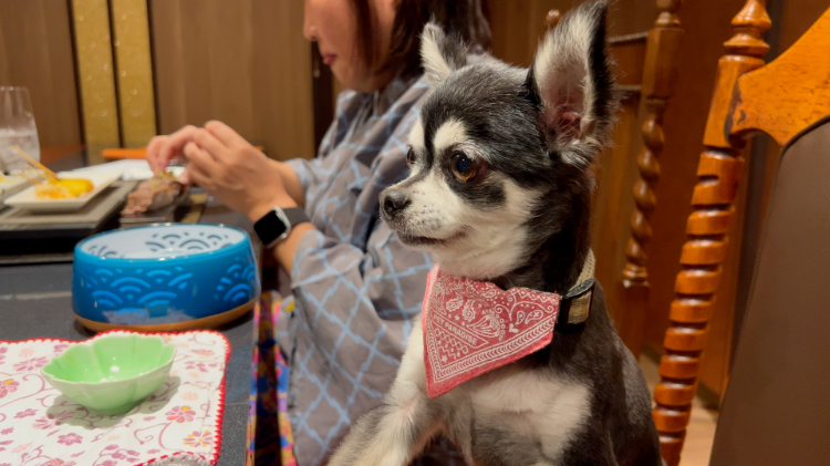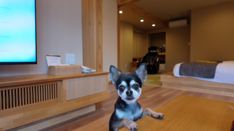 もともと夫婦で温泉旅行が好きで、半年に1~2回くらい行っていたんですが、とめ吉くんを迎えてからは月に1~2回行くようになりました。近年、ワンちゃんを受け入れてくれる宿が増えてきたことと、ワンちゃんは寿命が短いので、できるだけ一緒に過ごす時間を増やして、思い出をたくさん残したいと思ったことが理由です。昔はワンちゃんが同伴可能な宿がほとんどなかったんですが、最近は「一緒に泊まれる部屋を作りました」とか、「一緒に泊まれるように新しく別館を建てました」という宿も増えてきて、そういう場所を見つけて訪れるのが楽しくなったんです。ペットが一緒に泊まれる温泉宿を決めるときのポイントはいくつかあるんですが、まず、ペット連れ専用の宿よりも、普通の温泉宿にペット同伴可能な部屋があるほうが好きなんです。人間の気配も多く、日常生活に近い雰囲気があるんです。とめ吉くんも、そういう環境のほうが落ち着いて過ごしているように思います。それと、まだ少ないですが、食事やお風呂を一緒に楽しめる宿を優先して選ぶようにしています。ワンちゃんを受け入れてくれる宿のなかには、室内ドッグランがあったり、専用の食事を提供してくれたりするところも増えてきて、愛犬を家族の一員として扱ってくれます。。普段は食べられないようなごちそうを楽しめるのも、とめ吉くんにとっては特別な体験になります。僕たちも温泉や料理など滞在を楽しみながら、とめ吉くんも日常の近い雰囲気で落ち着けるし、旅行の特別感も感じられるような『お互いが楽しみながら一緒にいられる お宿』を好んで選んでいます。(とめ吉くん飼い主談)