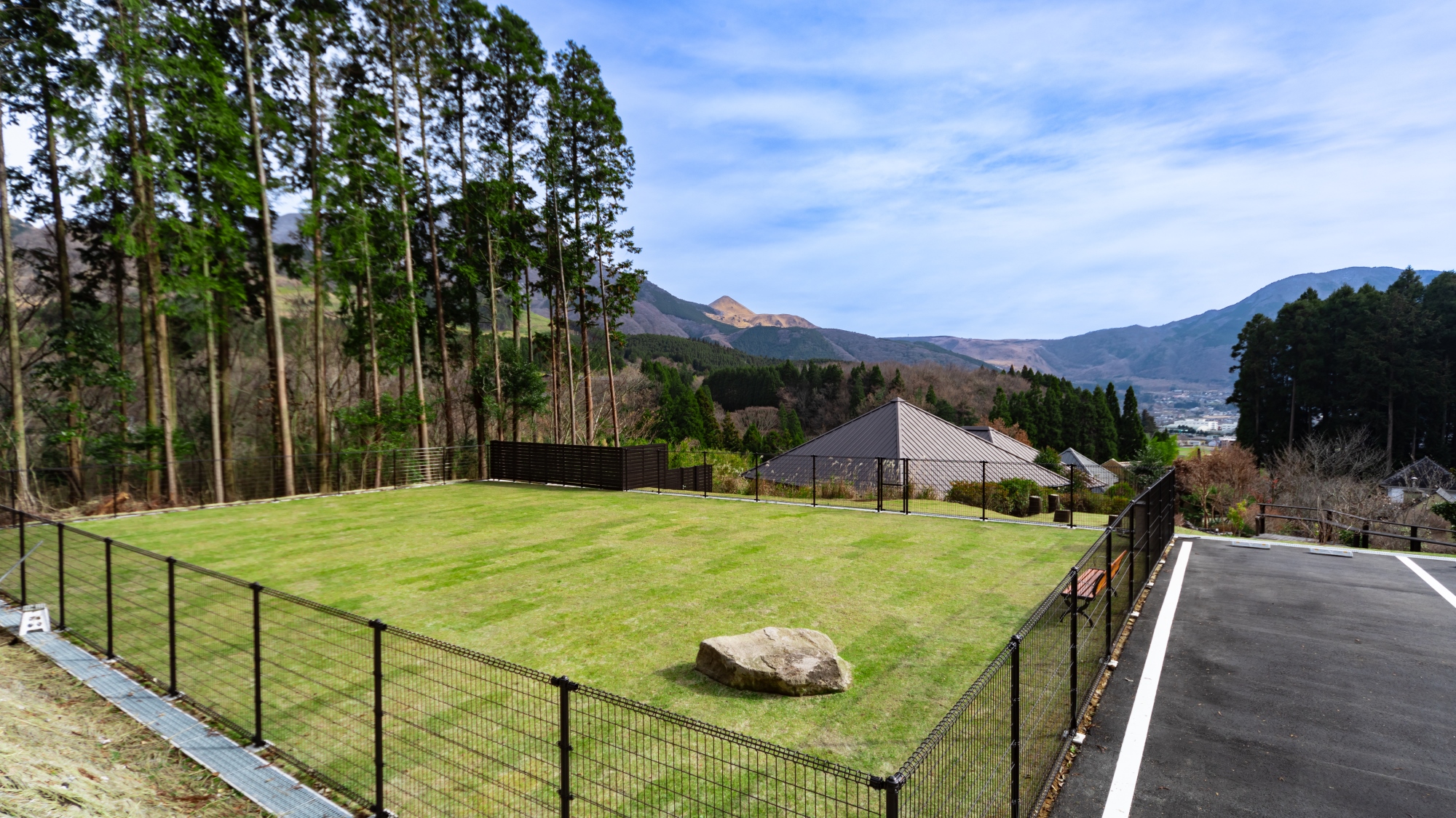 客室が全室離れになっている1日10組限定の『一壷天』は、全室に源泉かけ流しの半露天風呂が付いたお宿で、そのうち6つの客室がペットと過ごせます。お部屋に専用ドッグランがつくなどいくつかお部屋タイプがありますが、私は半露天風呂から由布岳が見える客室がお気に入り。ドッグランからも、由布岳の景色がすごくよく見えるのもポイントですね。また、専用の個室でペットと一緒に食事ができ、おおいた和牛などの地元の食材を使った懐石料理を楽しみました。ここも大型犬までOKなので、大きなワンちゃんでも安心して泊まれます。人間も自然を満喫できて、とても楽しめる宿ですし、周りには何もなくて静かなので、ワンちゃんものびのび過ごせると思います。
