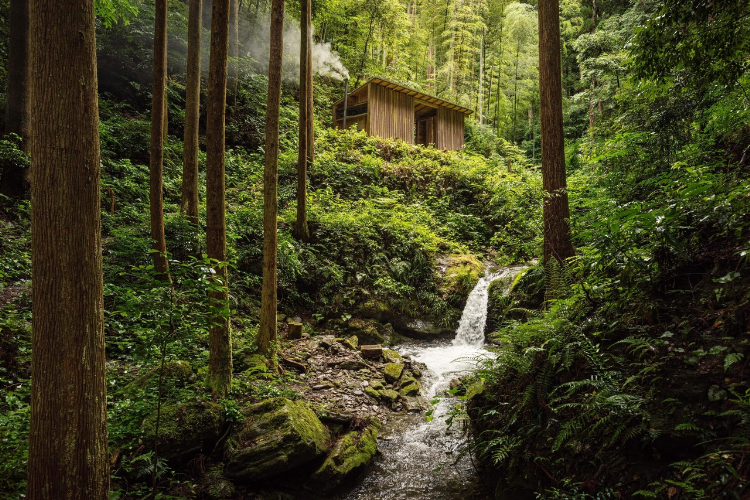 僕が一番好きなサウナは、徳島にある『森のサウナ』です。オーナーはもともと東京で働いていたんですが、日本をいろいろ見て周り、移住を決意したんです。まずはレストランを始めようと物件を購入したのですが、裏の森まで一緒についてきたそうです。その森は、真っ暗で間伐しないと光が入らないほど、木が弱っていたんです。どうにかこの木を使って何かできないかと考えていた時に、サウナのアイディアが浮かんだそうです。要は、弱った木を見極めて適切に間伐して森に光を入れて、またその木を薪にし、灰を森に返すことで森が元気になるという仕組みなんです。サウナに入ることで、森が元気になるんですね。サウナ室は非常にプリミティブで、薬草を摘んでロウリュに使うんです。第2水風呂や第3水風呂など、名前がつけられた水風呂は、水がとてもきれいで、なんと飲めるくらいなんですよ。自然とのつながりを大切にしていて、ここに来ると本当に豊かな気持ちになります。午前の部と午後の部に分けた1日2組限定の貸切で、サウナだけの利用も可能ですし、1日1組さま限定で宿泊を楽しむこともできます。近くに温泉もありますよ。