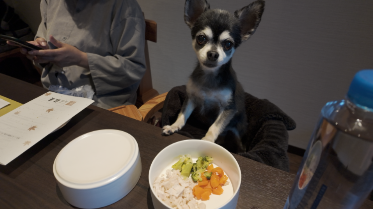 「僕のディナーも出てきて、みんなでオールインクルーシブを楽しめるワン!」