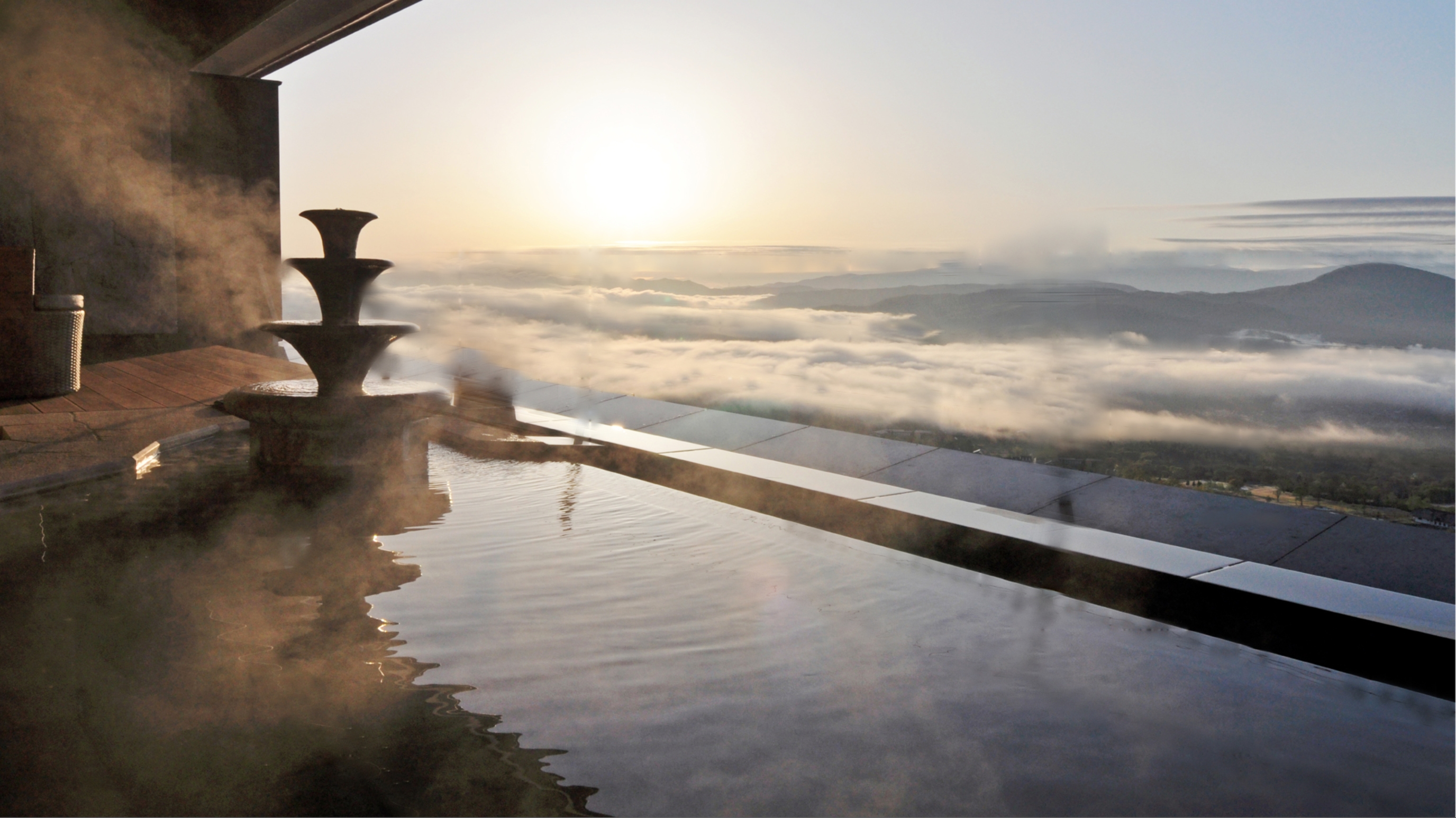 角部屋にシングルルームがあり、大きな窓から冬はゲレンデが望めます。リクライニングチェアにもたれて、コーヒーを飲みながら読書をし、時々顔を見上げてスキーヤーたちの滑降を見つめる。なんとも優雅な時間です。標高1000mの立地を生かした絶景も見どころで、露天風呂からの景色は圧巻!朝焼けは一段と美しく、うっとりします。
