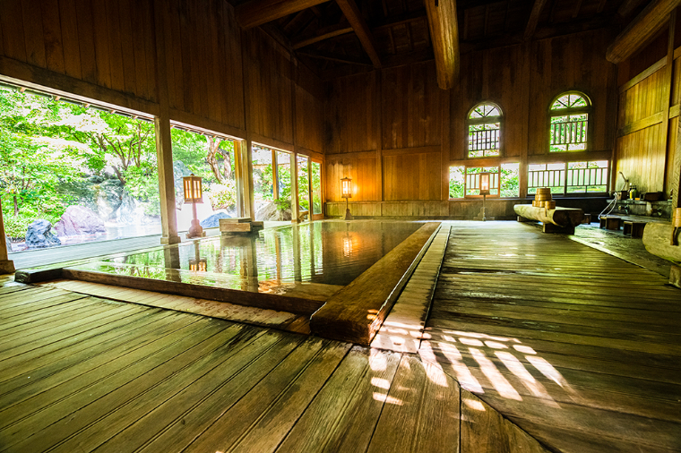 弘法大師が発見し、浴槽に敷き詰めた玉石の間から温泉がポコポコと自然湧出する大浴場・法師乃湯は特別な風情がある空間。国鉄時代のフルムーンポスターに採用されたことから、親世代で憧れている人も多いはず。総檜造りの玉城乃湯も内風呂の外に露天風呂がありすばらしい眺め。本館・別館ともに国の有形文化財に指定されており、文人墨客が過ごした当時の趣が残されています。