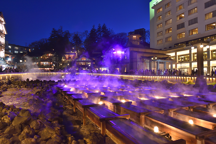石井:草津は温泉街全体をどんどんきれいにリニューアルしていて、“裏草津”という新スポットもできました。殺菌力が高い草津温泉の湯で手を洗える『手洗乃湯』や、源泉が流れていて天然のスチーマーのように浴びられる『顔湯』、約1万冊の漫画作品が並ぶ『漫画堂』など新しい見どころが増えました。さらに、草津温泉の入り口に『温泉門』という立体交差が開通。温泉を大量に滝流しにして、夜も楽しめる無料の足湯と駐車場も完成しました。夜になると、その温泉門から湯畑、西の河原温泉の方まで美しくライトアップされるんです。夜の幻想的な草津を楽しみたくて、宿泊する人が圧倒的に増えたそうです。