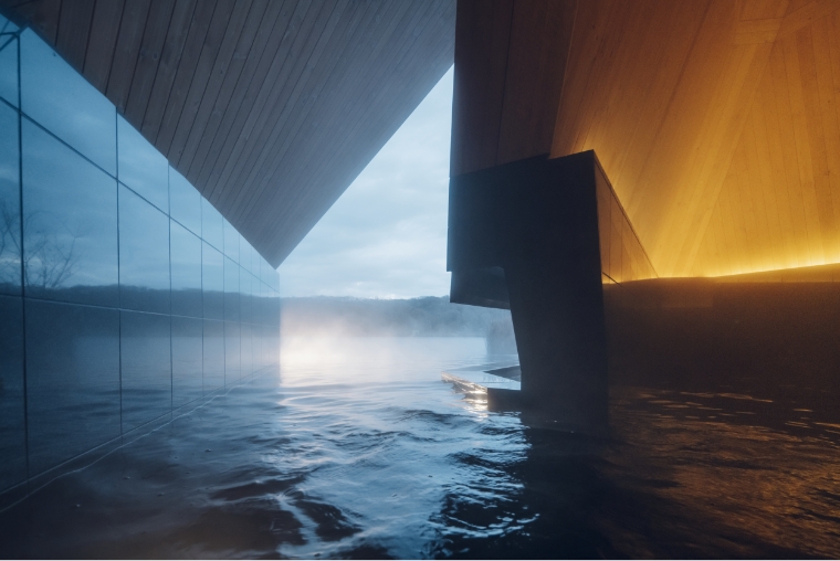 石井:あの温泉は最高です! 『△湯(さんかくのゆ)』はアイヌ文化の建築特徴が採用されていて、アイヌ民族の昔のお家に入っていくような感覚を味わえるんですよね。私は冬に行ったのですが、露天風呂に浸かって、目の前の凍った湖を見ながら湯けむりに包まれていると、アイヌ民族が暮らしていた時代にタイムスリップしたような気持ちになっちゃいました。